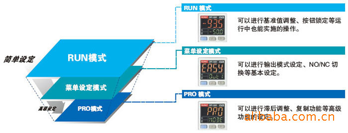 · 每按一下按钮,模式交替变化,设定值1(P-1)设定模式,设定值2(P-2)设定模式,设定值3(P-3)设定模式,设定值4(P-4)设定模式,设定值5(P-5)显示模式与检测模式。